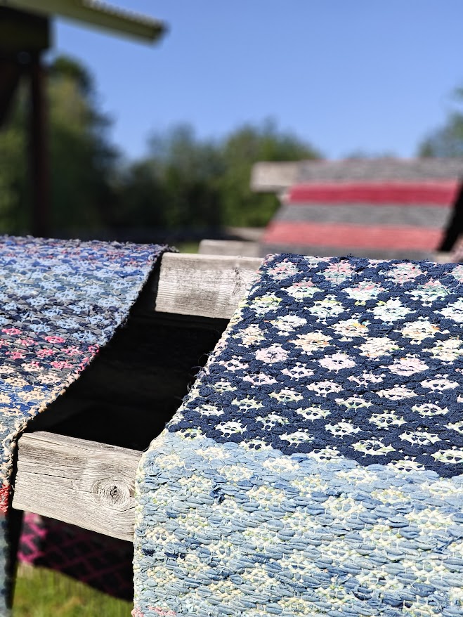 ラグマットは長持ちし、世代を超えて受け継がれることも珍しくありません。しかし、新しく織る技術も失われてはおらず、今も生きた伝統として続いています。フィンランド各地の市民講座では、幅広い年齢層の人々が集まり、昔ながらの大きな床置き織機を使って、愛され続ける実用的なラグマットを織る技術を学んでいます。