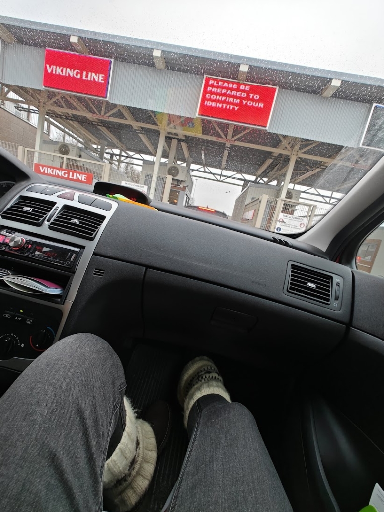 Check in the app or booking confirmation when vehicle check-in begins. Arrive preferably one hour before departure. Follow the signs to your company’s lanes and stop at the checkpoint when it’s your turn. The agent will check the passengers’ IDs and your booking, give you boarding cards, and direct you to the lane where you will wait to move forward. You will receive a tag to hang on your mirror indicating the destination (e.g., Å = Åland). Follow the instructions of the port and car-deck staff at all times.