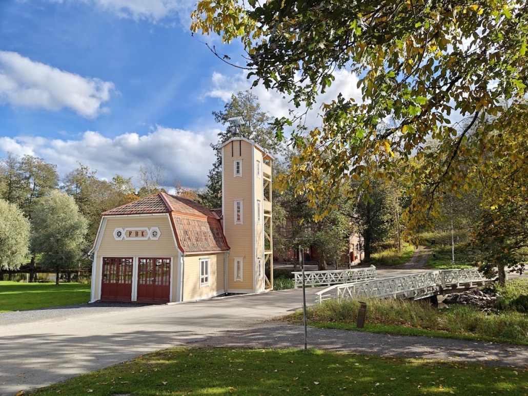 I recall the tall, wooden VFD building being under renovation some time ago, and now it gleams like new, despite being over a hundred years old. I cross the bridge next to it, heading to the main street of the ironworks, just to check the opening hours of Café Antique. I want to ensure that this visit to the ironworks does not end without a little treat. After all, what is a visit to an ironworks village without a coffee break! The café is open well into the afternoon, so I decide to first explore the center and the Tree species path, and then stop for coffee to conclude the experience.