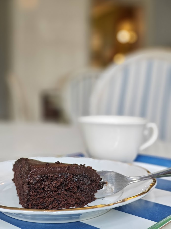 On the street terrace of Café Antique, a couple is enjoying what looks like a lovely, leisurely treat in the sunshine. I step inside the café and find a large slice of vegan mocha square that suits me perfectly. The dark pastry smells wonderfully of coffee and cocoa and melts in my mouth as I sit down to enjoy it with a cup of coffee in the café’s calm atmosphere.
