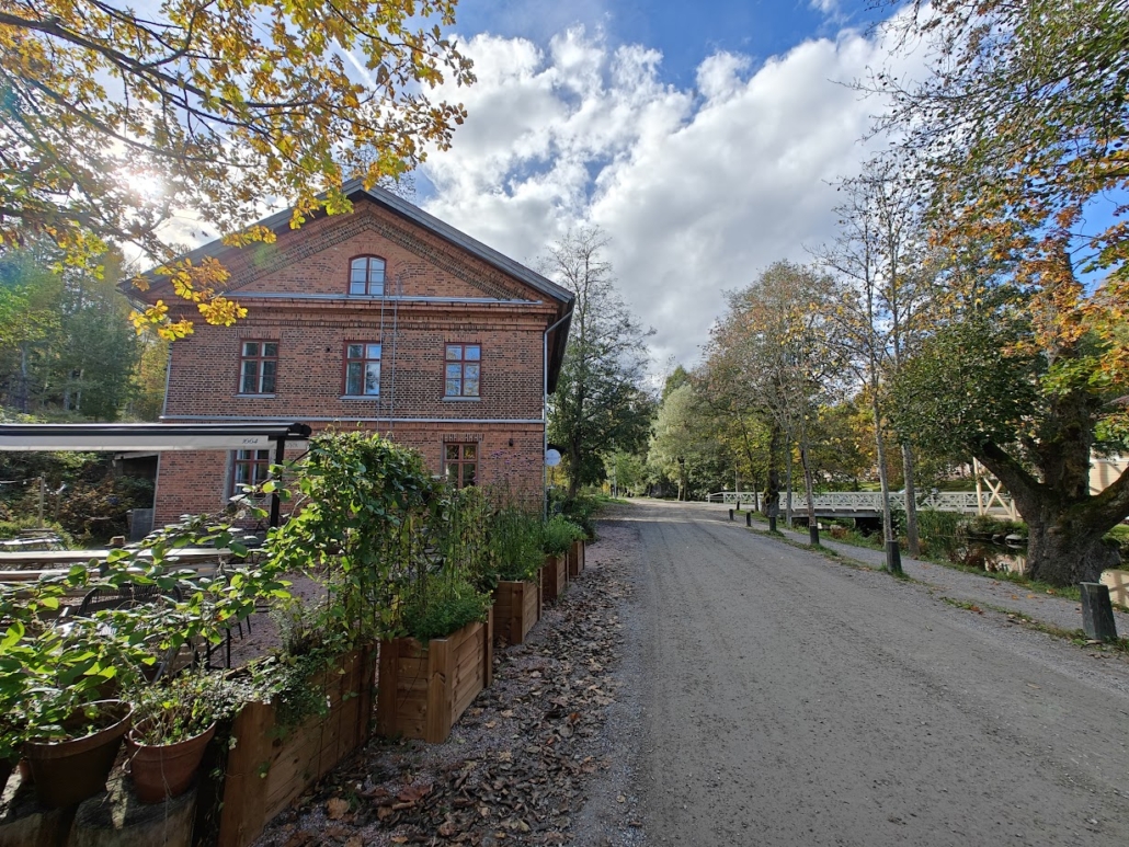 As a final detour before heading to the Tree species path, I go to see the old community center Lukaali, which reminds me of a building from the Moomin stories, and the nearby Fiskars Wärdshus inn, where my husband and I stayed last spring. We have a tradition of booking a hotel night in a different location for our wedding anniversary weekend, and this year, Fiskars was chosen specifically because of this inn. It is the oldest still-operating inn in the country and has been in operation since 1836 – almost two centuries! We were prepared for some serious haunting, if only because of the building’s age, but we slept so soundly that any potential haunting went completely unnoticed by us.