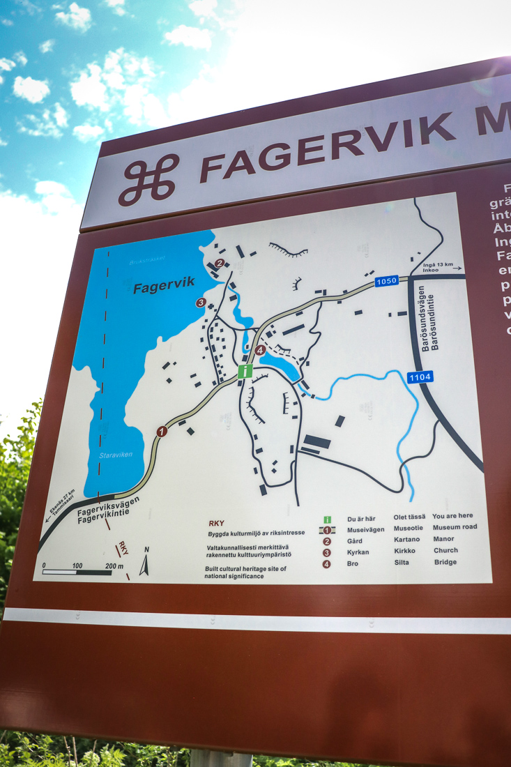 We followed the example of others and first dashed to the café to get coffee and soy ice cream. Refreshed by these treats, we then set out to explore Fagervik ironworks beyond the main street. We first stared open-mouthed at the map, trying to figure out where we were and where to head next. For some reason, my map-reading skills and general sense of direction had stayed at home, so we just followed others towards the church by the lake.