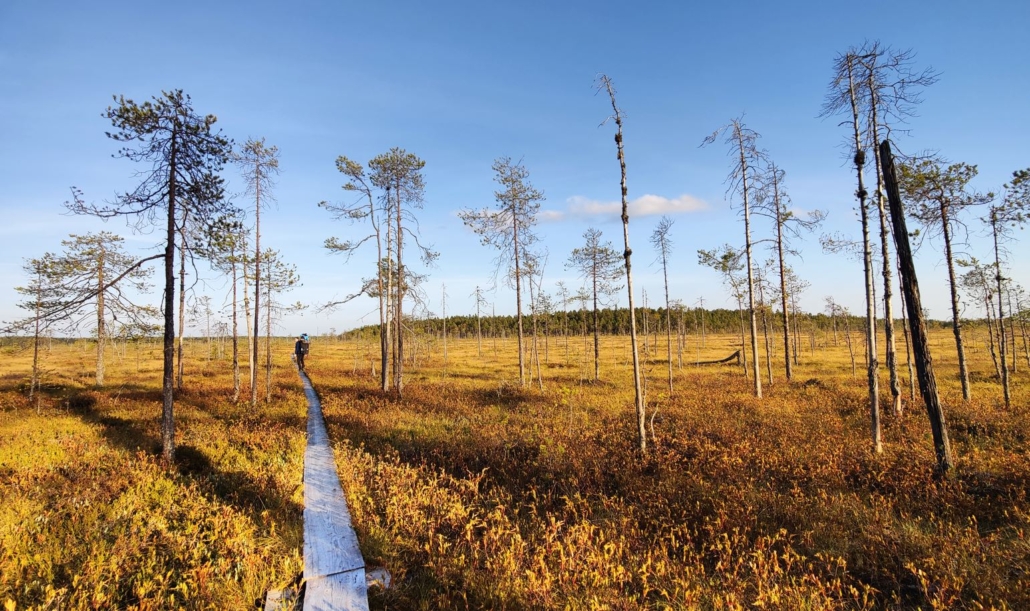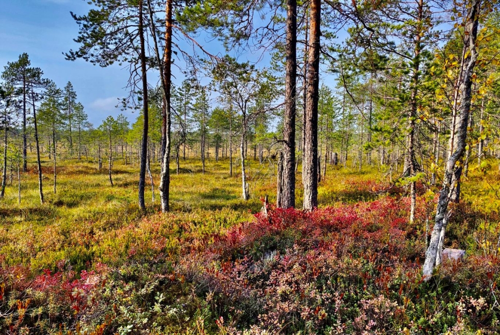 Patvinsuo is naturally known for its mires, but there’s plenty to admire in the forests as well! The remarkably pine-dominated environment was astonishingly flat. In these landscapes, the kings of our forests fill their bellies with nature’s bounty before winter hibernation. We didn’t see any bears, but perhaps the bear saw or sensed us?
