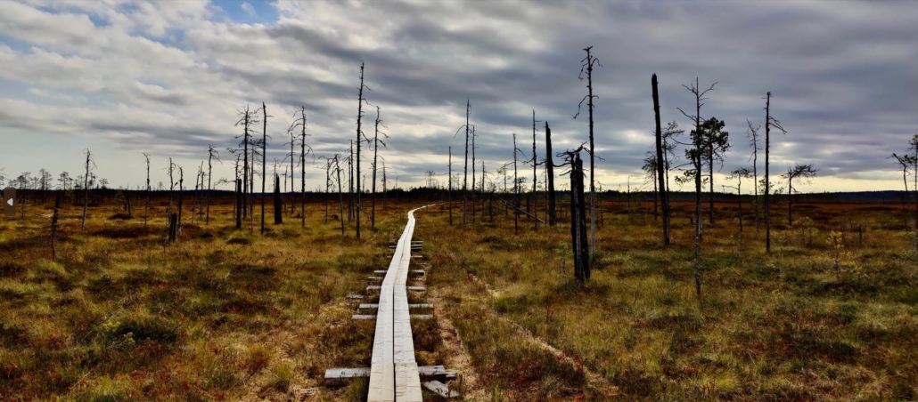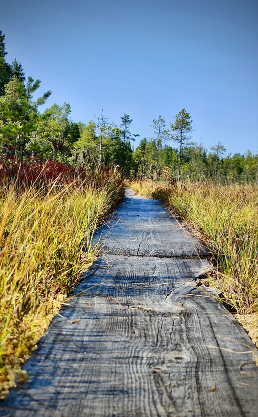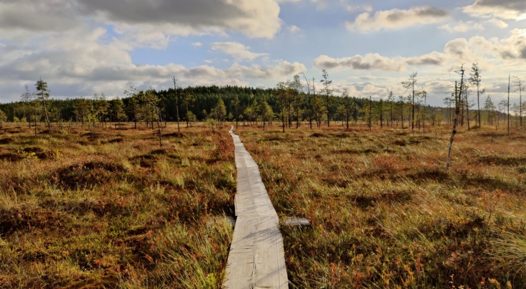 Someone has probably measured how many duckboards there are on Patvinsuo’s trails. For us, the duckboards functioned almost like spiritual highways, as the journey went so smoothly along these flat, obstacle-free paths. Duckboards are found especially along the Patvinkierto trail (25 km). You can hop onto the duckboards immediately after leaving your car at the Kurkilahti parking area and heading south towards the Teretinniemi bird-watching tower.