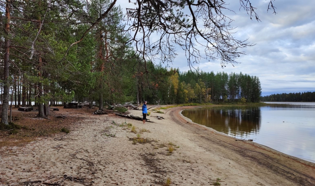 In Patvinsuo National Park, you can especially admire sandy beaches around Lake Suomunjärvi. The shores of the lake are almost entirely soft white sand, and you can walk around the entire lake along the marked Suomunkierto trail (16 km). You can quickly reach the sandy beaches by parking your car at either the Suomu Nature Hut or the Surkanpuro or Kurkilahti parking areas. I can only imagine what an amazing summer destination for swimming and paddleboarding Lake Suomunjärvi must be!