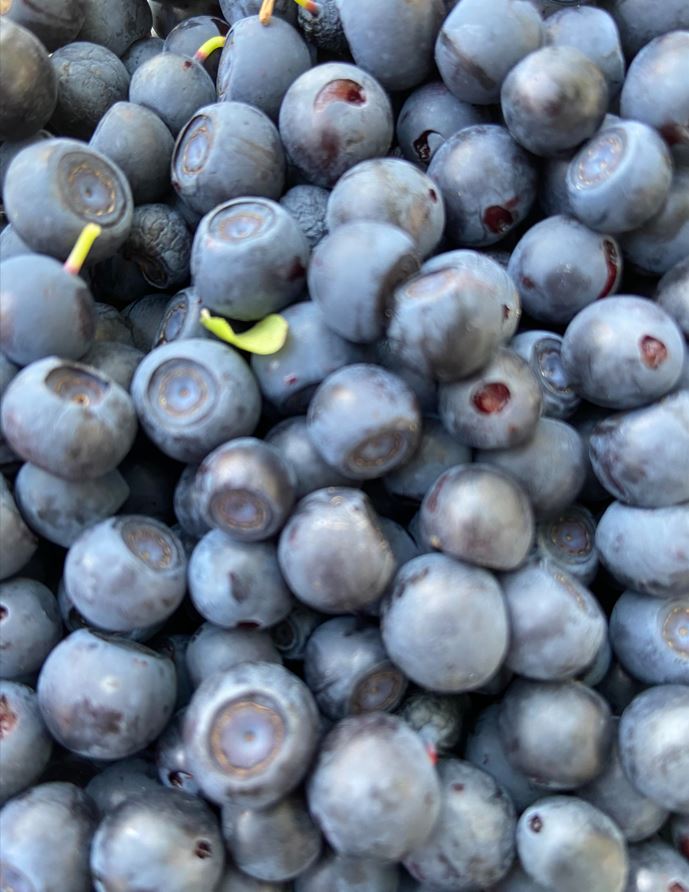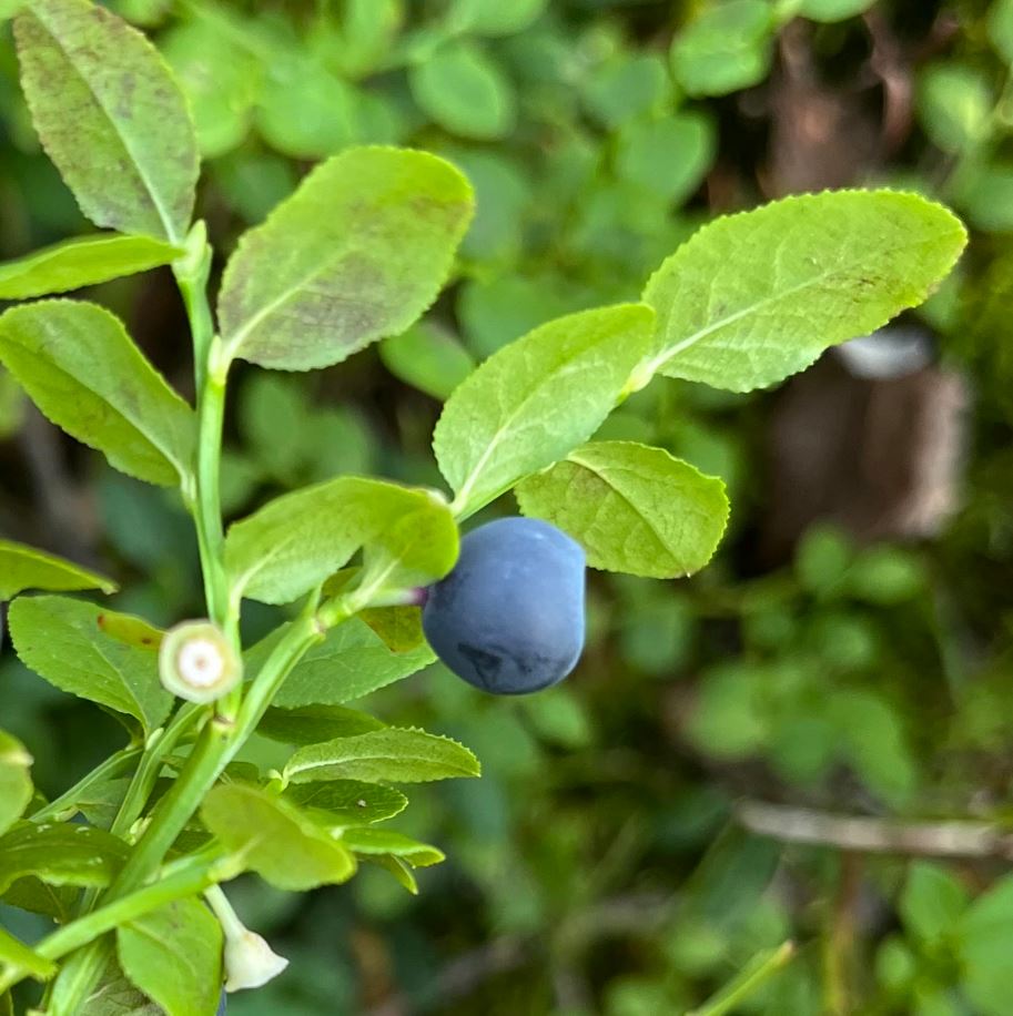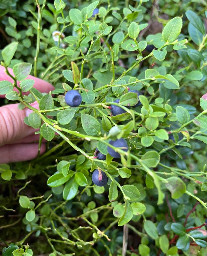The soft forest floor rustles under my boots as I leisurely make my way deeper into the forest’s shelter. My eyes scan the undulating terrain for clusters of blue berries. Indeed, there are plenty here. Beneath the arched shrubs and the oval, serrated leaves, a handful of plump dark blue berries are revealed. Soon, my eyes spot more. And more.