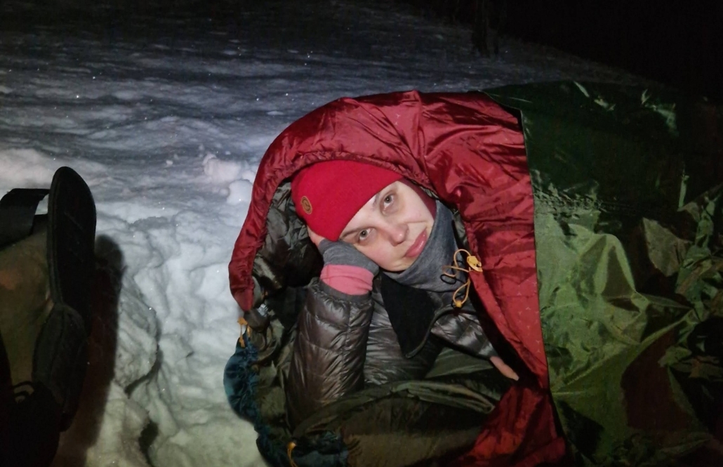 In many ways, the night was an exciting one for Maarit, as although the location was familiar, she does not have extensive experience of winter camping or sleeping out in the open.