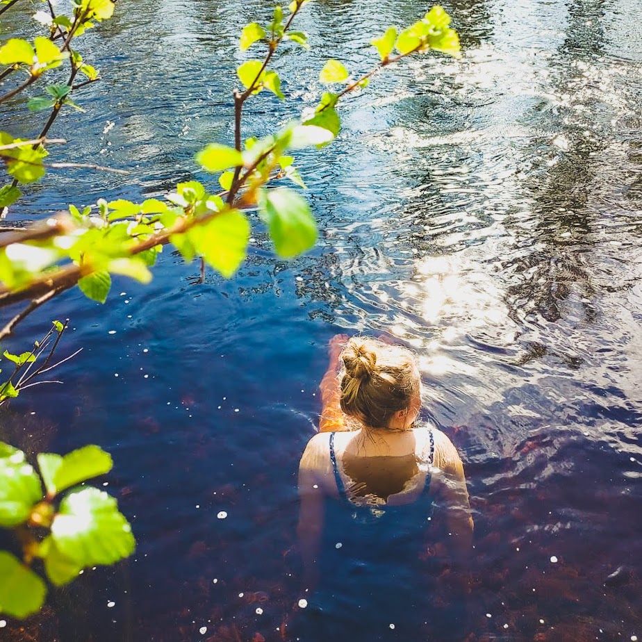 “In the embrace of water, I always feel better than anywhere else—the freshness of the water and its gentle squeeze around my body is a state I descend into whenever I can. The need for water has grown so great in adulthood that I had to start ice swimming to be able to be in the water regularly throughout the winter. And the water of a swimming pool with its sterile surfaces and chemical smells doesn’t meet that need. It has to be water that smells softly of nature, whose shores are lined with natural stones and standing trees that are calming to look at.”