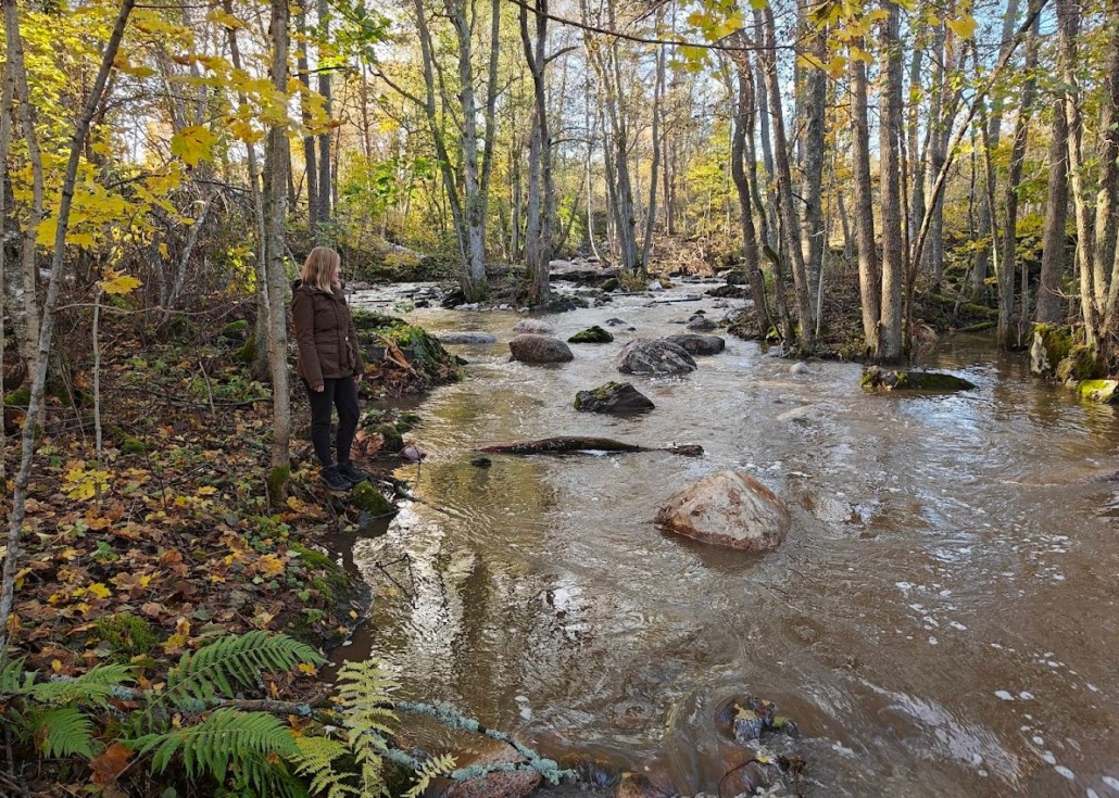 “Next to my childhood home was a small forest and a stream. I spent almost all my free time there. I played house under a big spruce and floated toy dinosaurs in the stream. I nibbled on wood sorrel, and sometimes even tasted pine needles because the Moomins ate them before their winter sleep. Rotten alder was soft and reddish and served as smoked salmon in kitchen games; puffballs acted as spice shakers. The games also included lots of mud, sand, soil, leaves, and stream water. As an adult, I occasionally call forth my inner child. I lie on the forest’s moss bed and push my hands into the moss. I float leaves and twigs in the stream using a stick. I touch and sniff rock surfaces that look interesting and wander through forests new to me like an explorer.”