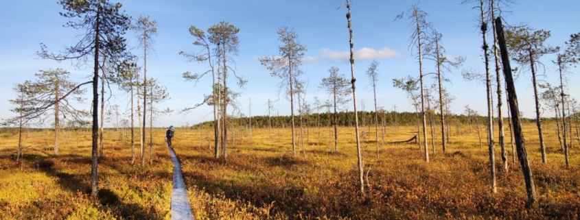 Someone has probably measured how many duckboards there are on Patvinsuo’s trails. For us, the duckboards functioned almost like spiritual highways, as the journey went so smoothly along these flat, obstacle-free paths. Duckboards are found especially along the Patvinkierto trail (25 km). You can hop onto the duckboards immediately after leaving your car at the Kurkilahti parking area and heading south towards the Teretinniemi bird-watching tower.