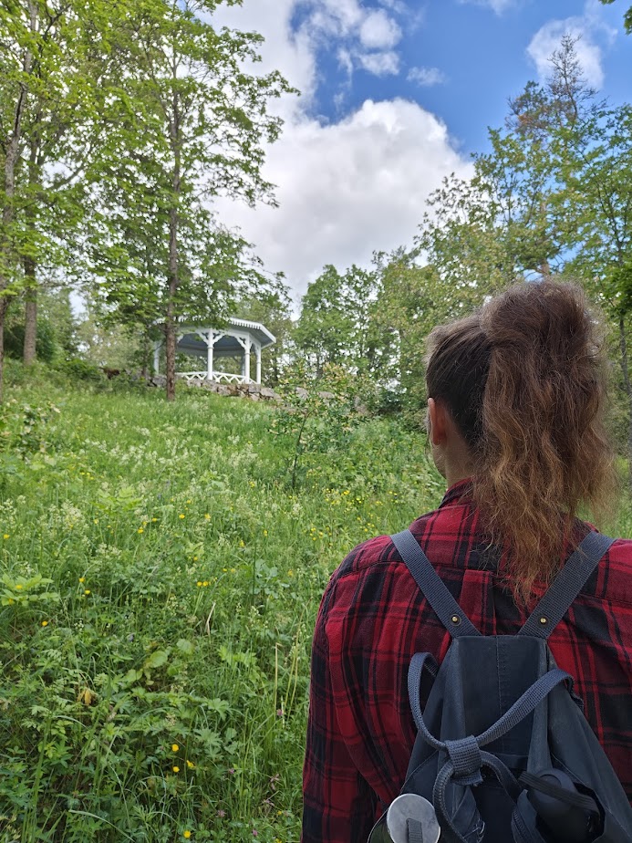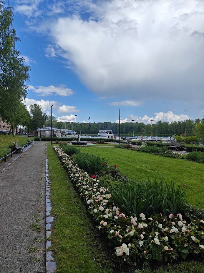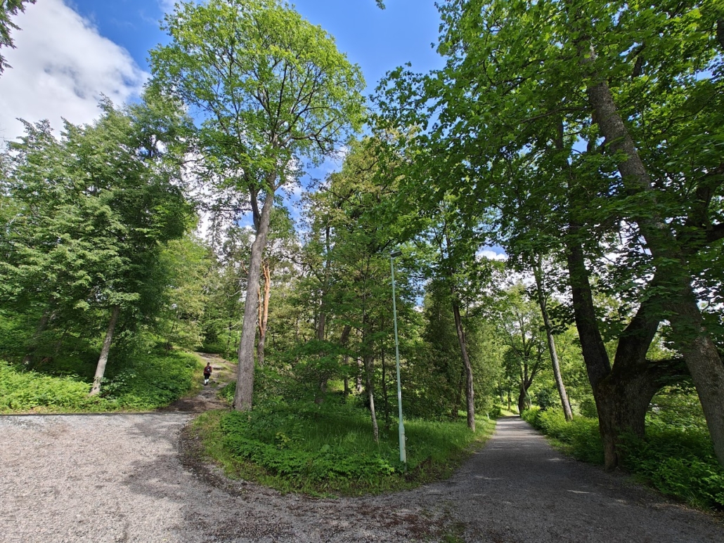 Oaks and a whole host of other large trees adorned the slope, behind which Lake Vanajavesi shimmered in the sunshine between rain showers, sparkling like never before. The atmosphere of the park was delightfully overgrown—the kind I greatly love. A glance into history reveals that this park was built partly using prison labor from the castle on the decision of Governor Otto Rehbinder, mainly in the 1850s, before which the place was ominously known as Executioner’s Hill.