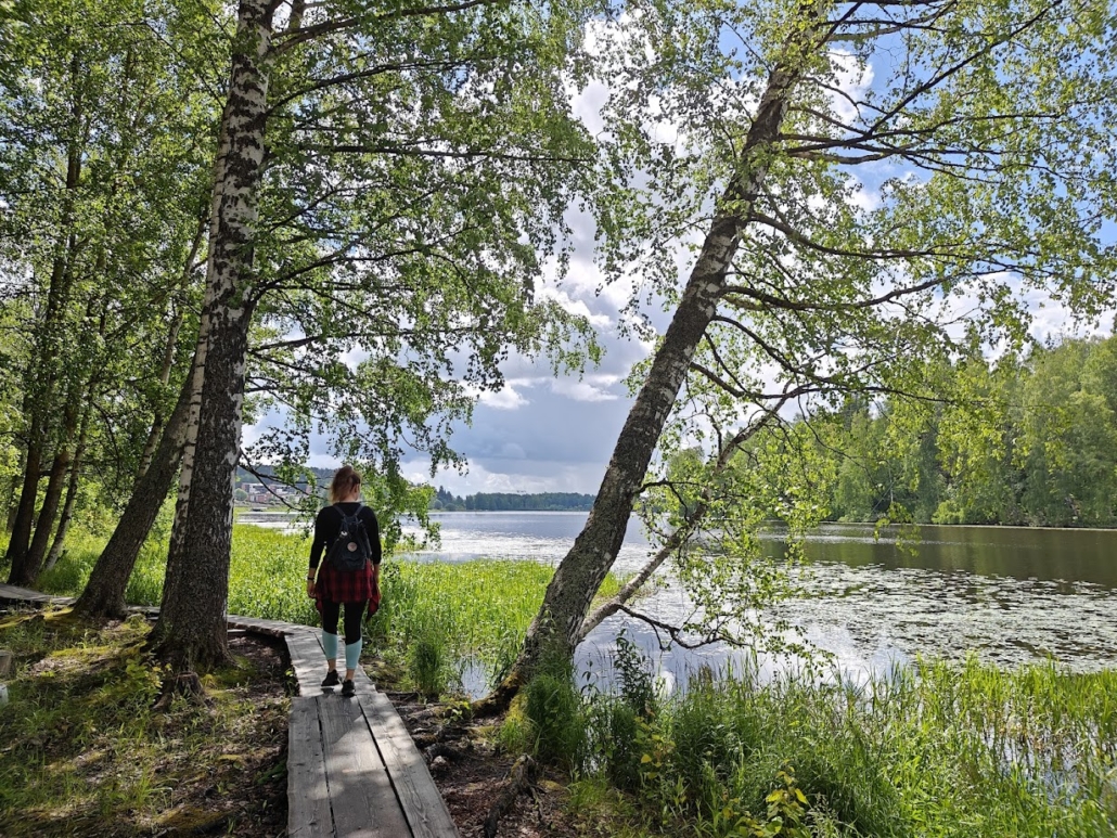 Brown and white signposts smoothly guided us into the park-like surroundings of Häme Castle, and the summer sky with its fluffy clouds gave its best as we arrived at the Vanajavesi lakeside route. The castle is an excellent place to stop at least for coffee and perhaps for a guided tour after the walk, but equally great places to leave your car are also the railway station’s parking area and the Pööli parking garage. And of course, you don’t necessarily need a car at all, as it’s only a few minutes’ walk from Hämeenlinna railway station to this loop trail.