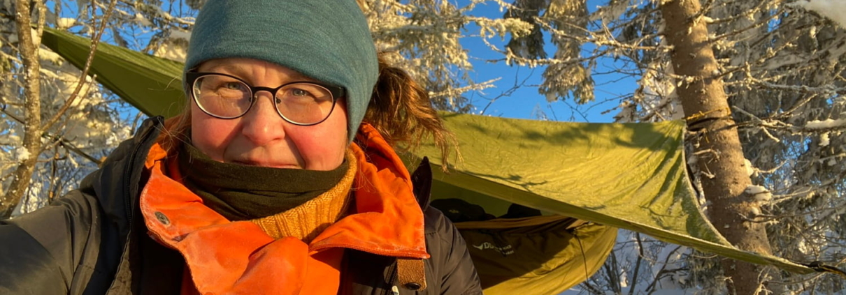 – Since my hammock and underquilt are from different manufacturers, they don’t perfectly match. I had to tighten and wrap the underquilt around the hammock quite creatively. This was familiar from previous trips, but in winter the bulky sleeping bag caused problems – it kept trying to “escape” from the hammock, meaning the foot end lifted out from the warmth of the underquilt, Marja explains.