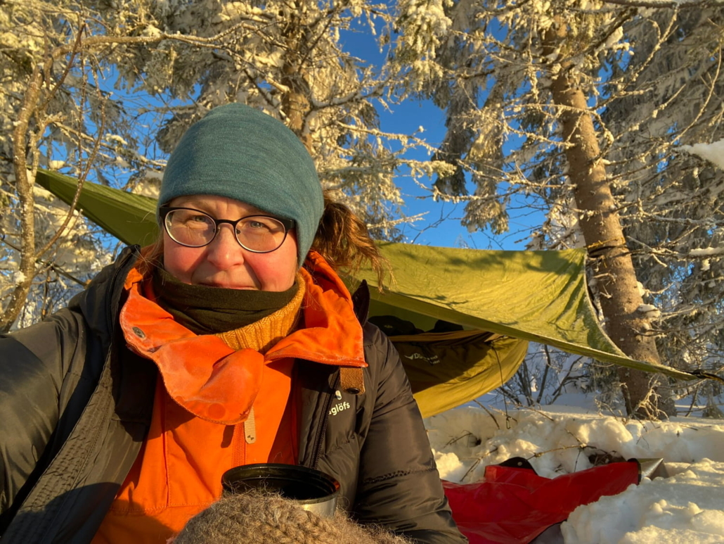 – Spending a winter night in a hammock is best suited for a more experienced hiker with good equipment and the ability to sleep even when feeling cold. It’s important to know yourself and the place where you’re staying, and to adjust your plans if necessary. If I hadn’t had experience with different kinds of winter shelters, I wouldn’t have chosen to sleep in a hammock overnight.