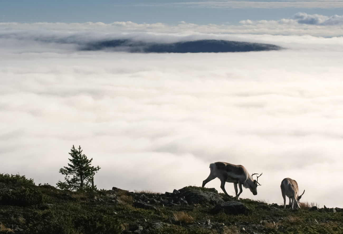 Of course in Lapland you will run into reindeer. Some times the clouds are so low that the only clear place is on top of the fells.