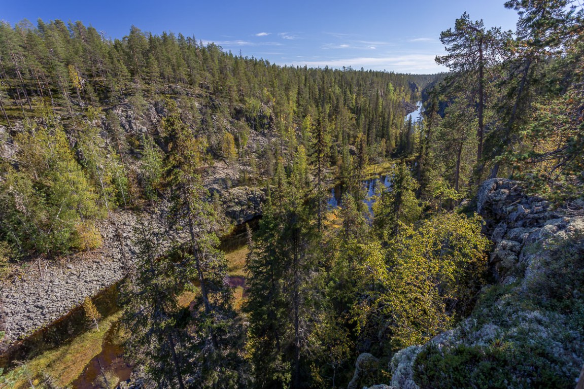 The Toriseva canyon lakes and Helvetinkolu in Helvetinjärvi (Hell’s Lake) National Park were formed in the same way. This canyon formation process is however completely different to that of Oulanka’s canyon, where water and ice have carved the gorge from the bedrock.