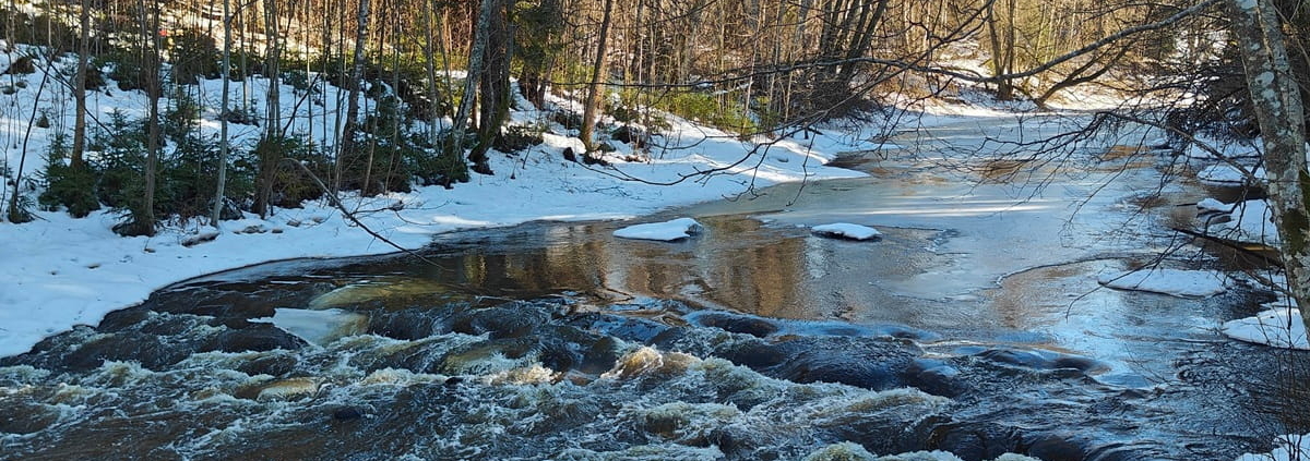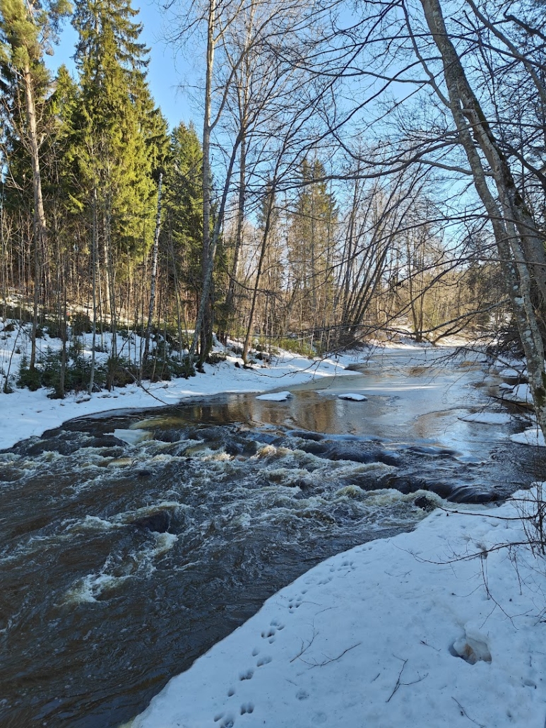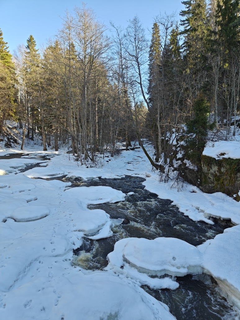 Late winter in Finland is perhaps the most mysterious of all seasons. As the sun finally begins to warm, yet the ground remains covered in snow and ice, nature seems to hold its breath. We wanted to make the most of this exact atmosphere when we headed to Latokartanonkoski trail in Salo. I was accompanied by my husband and his teenage daughter—a group that was in dire need of a break from the greyness brought by the long winter.