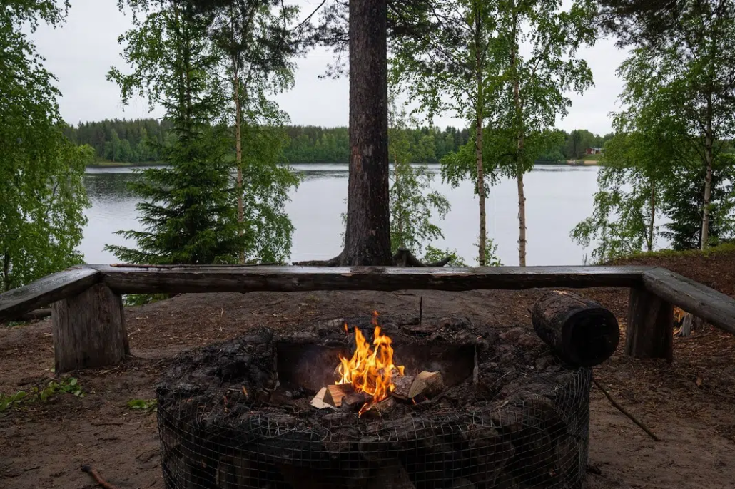 Located right on the bank of the Sanaskoski rapids, and just off the road, this lean-to is a great spot to relax by a campfire and listen to the rushing water—no long hike or preparation needed. The Sanaskoski rapids are part of the River Kuivajoki, which flows into the Bay of Bothnia just downstream, near the border of Simo.