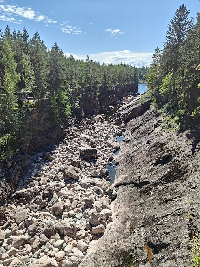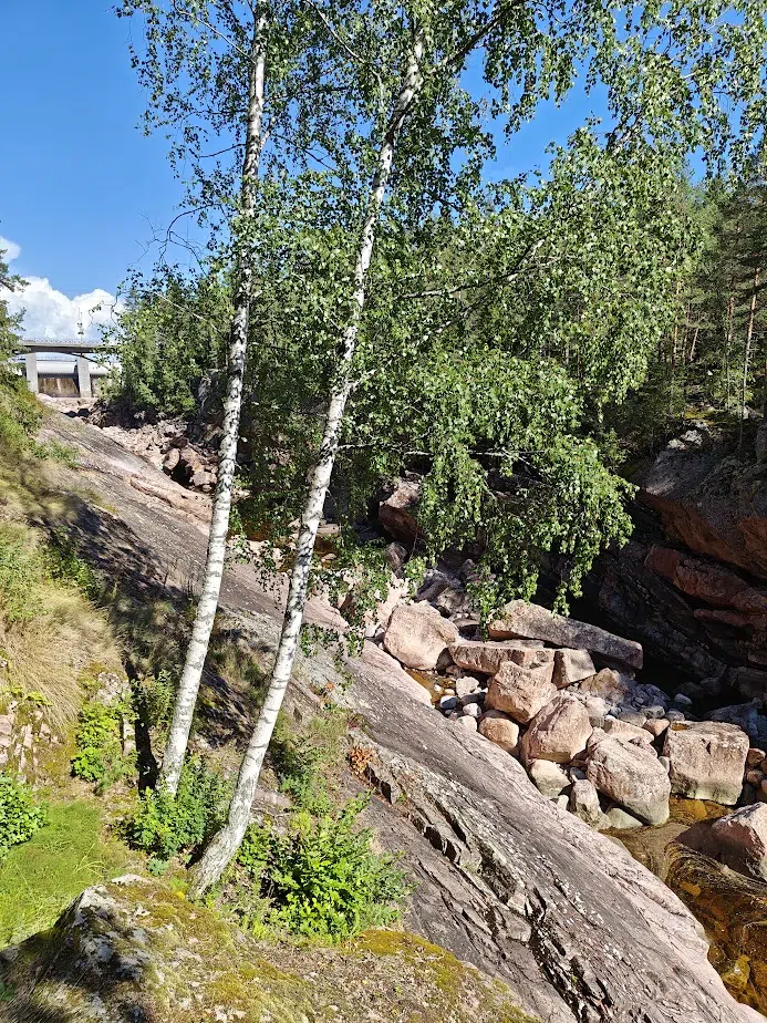 During our visit on a Sunday in August, the riverbed was dry and silent. Due to hydroelectric power generation, the Imatrankoski riverbed is usually dry unless the dam’s gates are opened, releasing a powerful, wild torrent of white water. These events are known as Rapid shows (koskinäytös). If you want to see the water raging, you can check the schedule of these shows online.