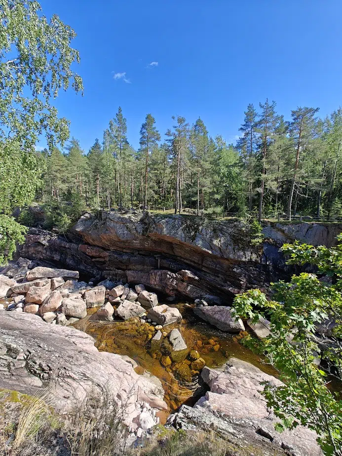 The compact town center of Imatra is a pleasant destination, perfect for stretching your legs, enjoying the outdoors, or indulging in a treat while passing through. It’s worth stopping in Imatra for a night, especially since the castle-like Valtionhotelli hotel towering right on the edge of the riverbed makes for a striking place to stay. This Art Nouveau-style castle, built in 1903, stands in a park-like setting and serves as a notable landmark for those heading to the rapids.