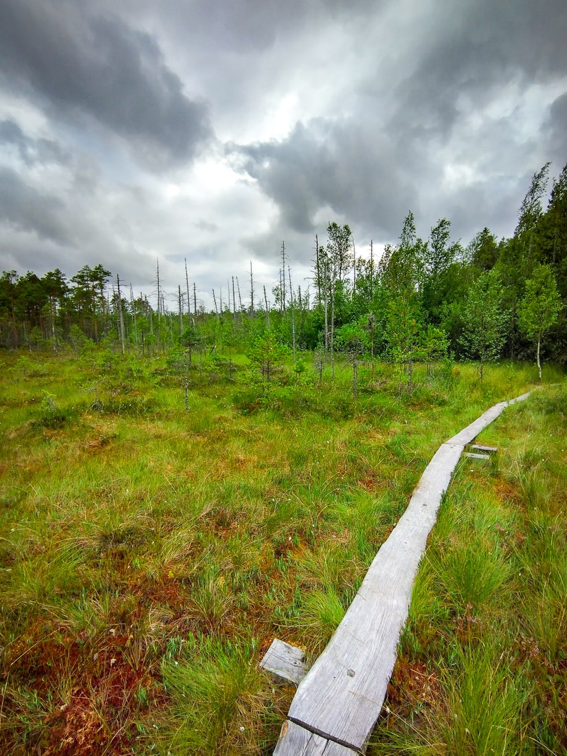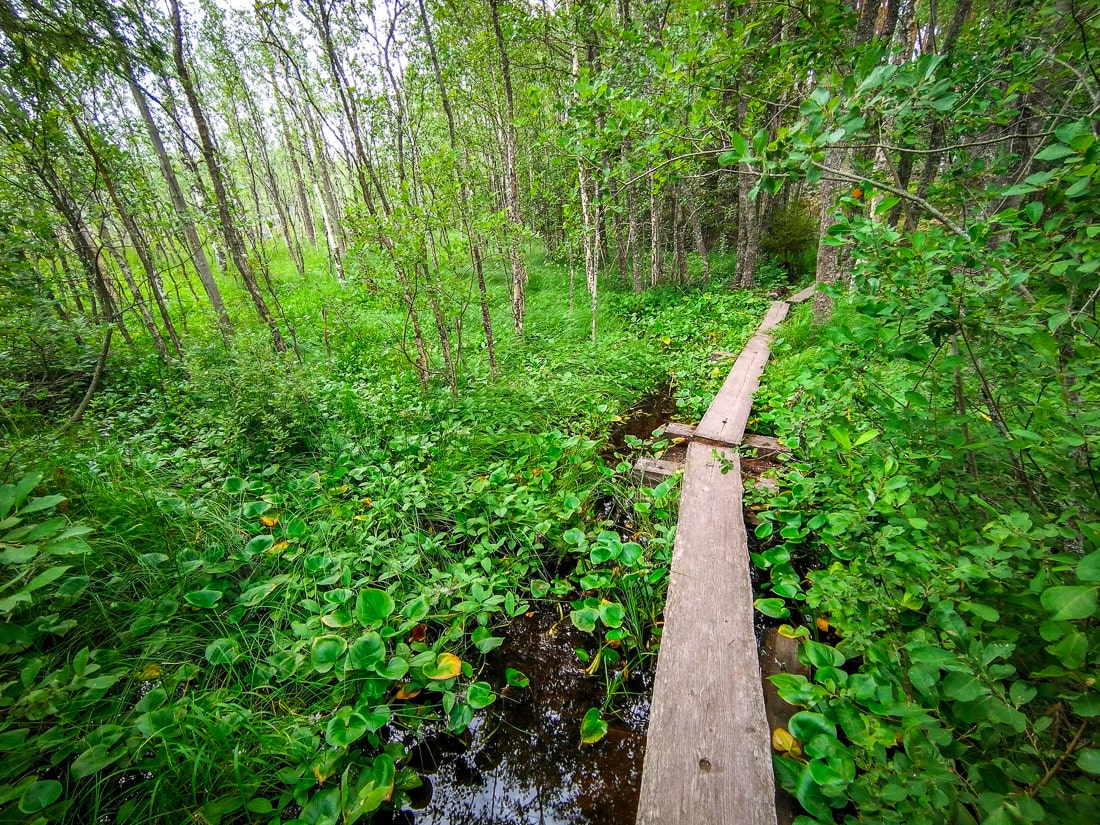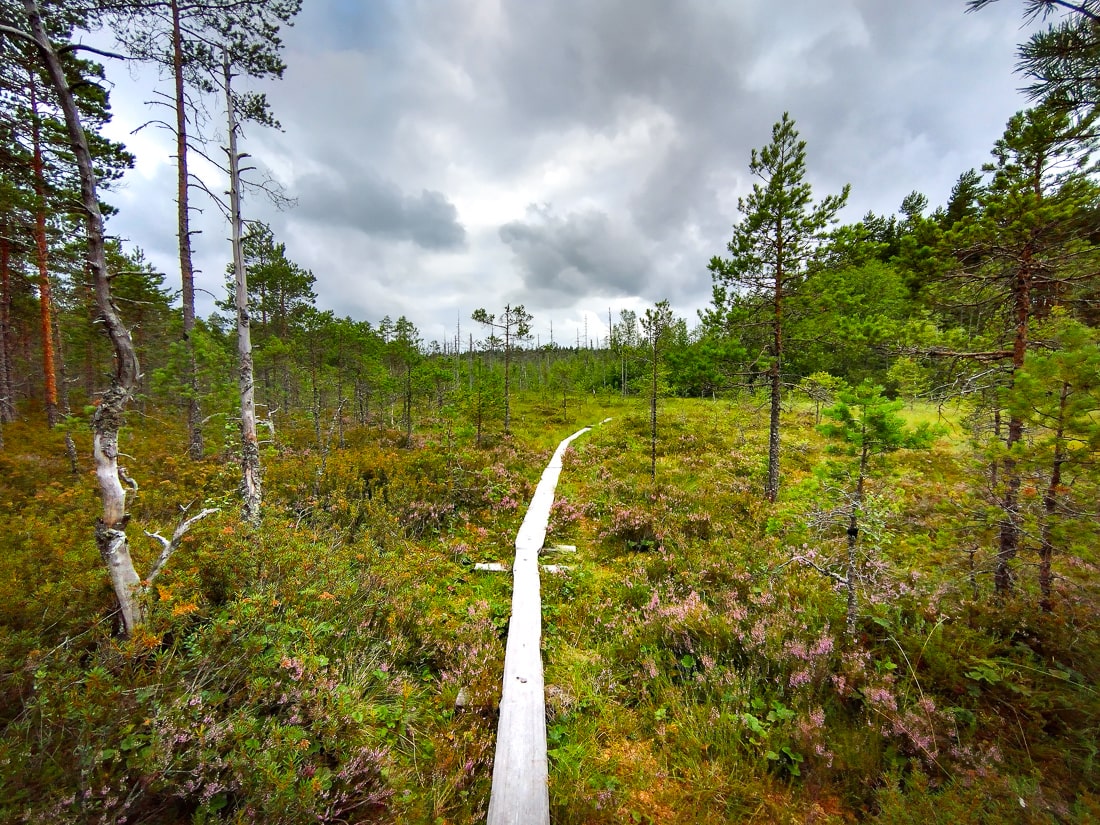 I exclaimed out loud when I saw the duckboards ahead. Duckboards mean there is a wetland or even water somewhere, and such terrain is my favorite. This section reminded me of Teijo’s Punassuo bog, which is also a beautiful place.