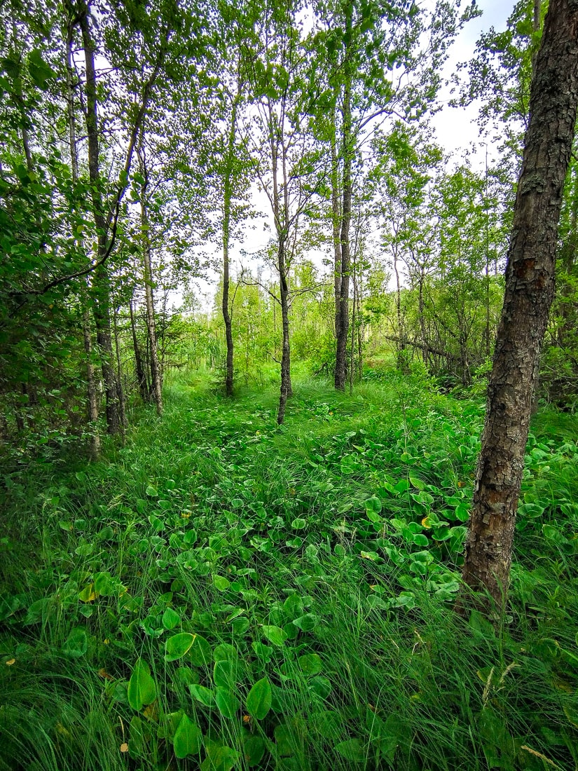The beauty and greenery of the moss and shrubs were captivating. The duckboards continued for a long way, occasionally pausing at an island, which seems to be planned for controlled burning, and then continuing again. Staying on the trail, sneakers were sufficient, and you didn’t want to stray off as all the beautiful spots were well visible from the path. A very successful route in my opinion.