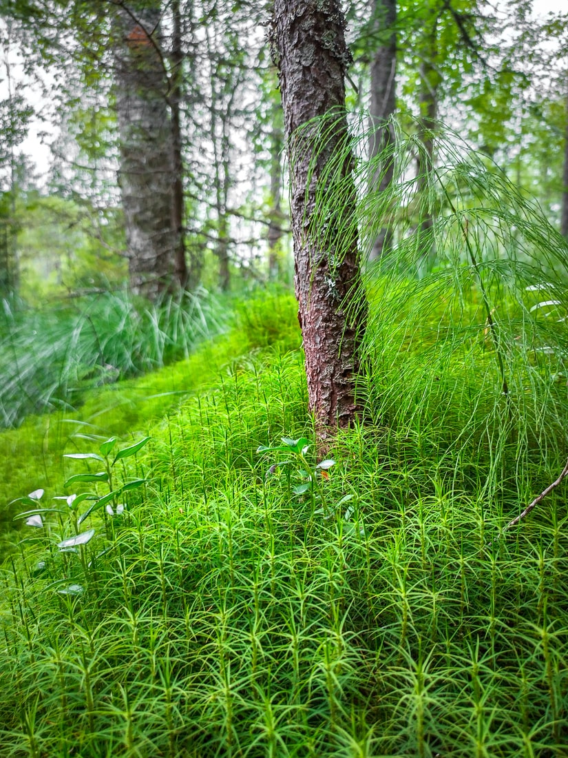 I got to exclaim again in the last meters, as just before returning to the car, there was this beautiful forest stream. The stream was quite dry now, and it would be interesting to see it more abundant at some point. A beautiful sandy bottom had risen as islands from the water, and the fairy-tale moss framed the whole spectacle. In this place, one especially hopes that people stay on the duckboards and don’t trample the beautiful shoreline moss (as seen in the right side of the photo above, where the forest floor has worn ugly).