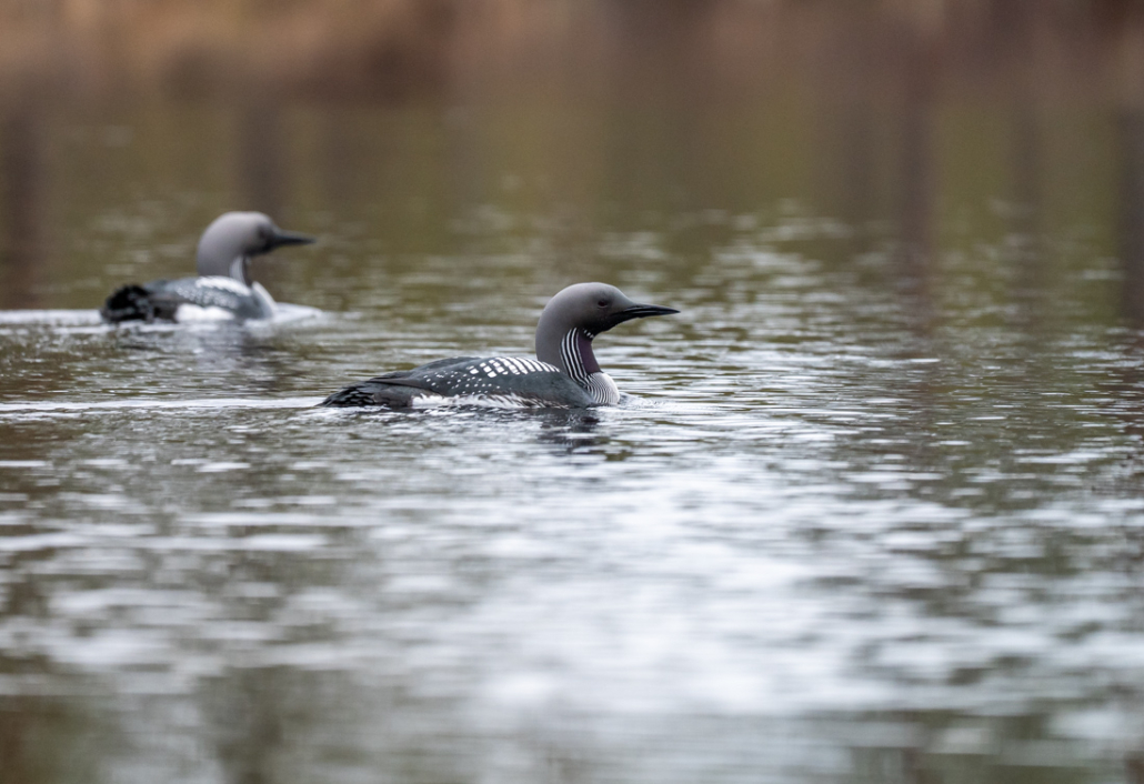 On reaching the road, I cross over and before long Spitaalijärvi appears between the trees. As the lake view opens up, I see a pleasing sight. Newcomers arrived while I was walking. A pair of black-throated divers (Gavia arctica) are swimming on the lake. What a beautiful sight. They show that, despite the chill, summer is on its way. I happily watch and photograph them from the bank, until the chill of the wind once again finds its way through my jacket and into my bones.