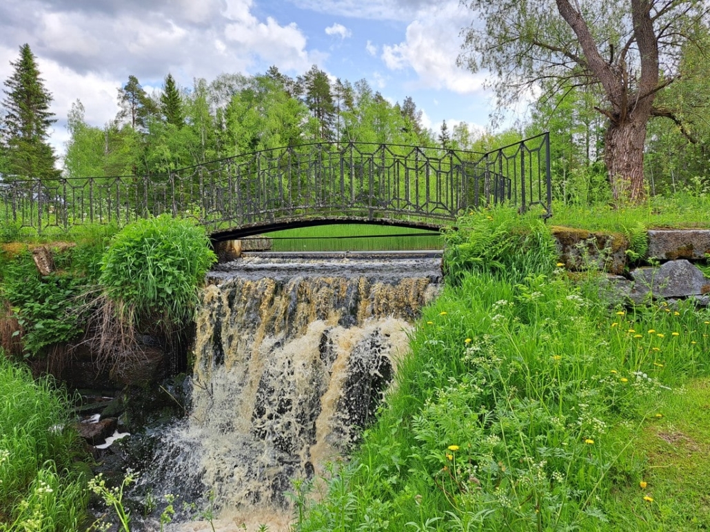 Below a beautiful arch bridge, we stood for a long while listening to the roar of the rapids and watching the splashing water. The fairy-tale atmosphere lingered, though the ironworks’ workers likely saw this place through very different eyes.