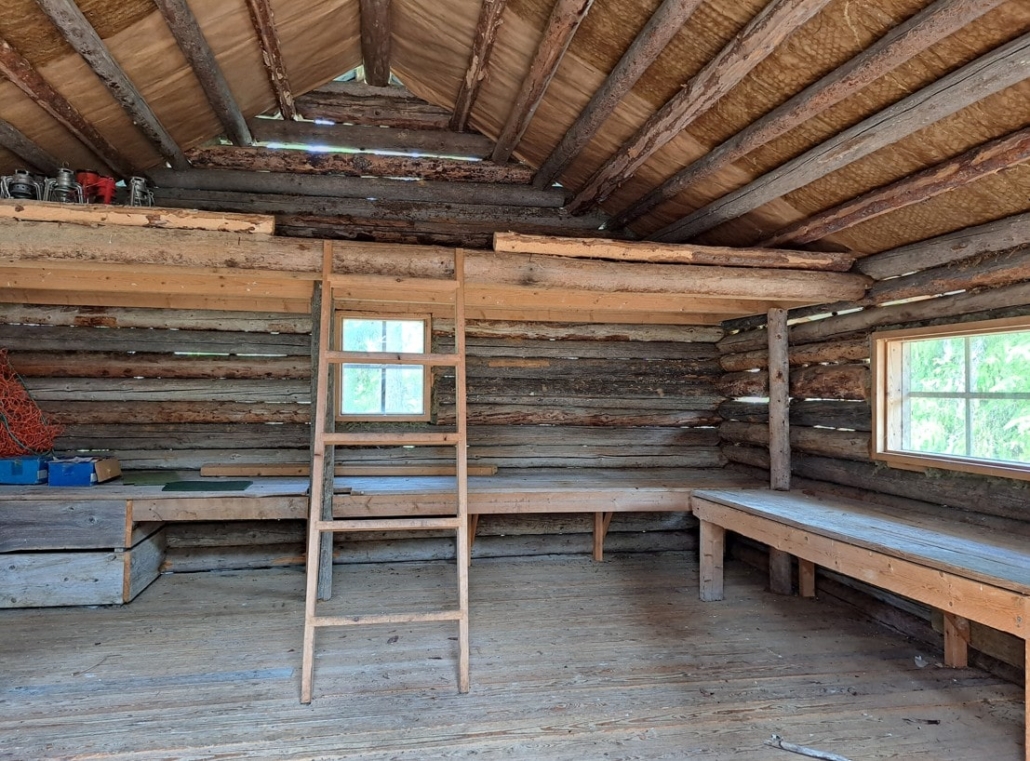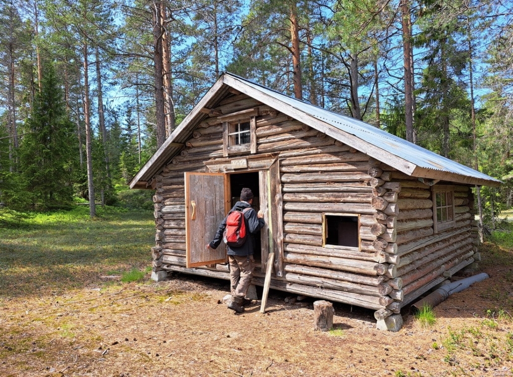 Along the way, we took a detour to the Rastplats Ladon rest spot, which was a 200-metre side trip from the main trail. There, we found a sandy clearing carpeted with lichen, with a couple of logs serving as seats. As the weather was beautiful, we sat there for quite some time enjoying the silence. Only the roar of the sea and the song of birds could be heard. At the edge of the clearing stood a tidy log hut—perfect for resting in bad weather.
