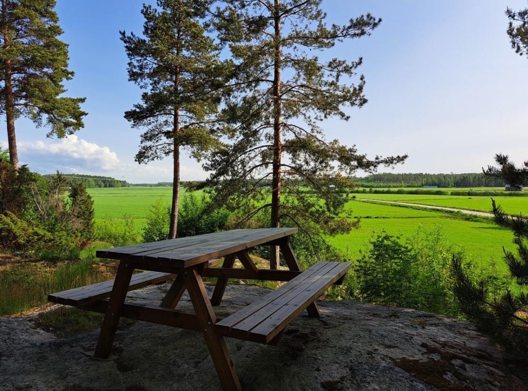 On our way back to the accommodation, we stopped at the Oravainen Battlefield (Taistelutantereentie 130). Here, on 14 September 1808, the Russian troops faced the Swedish-Finnish army. The battle was fierce, and about 1,800 soldiers lost their lives on the field. From the hill where Major General Adlercreutz led the battle, one can now sit at a table and look out over the green, well-kept fields below.