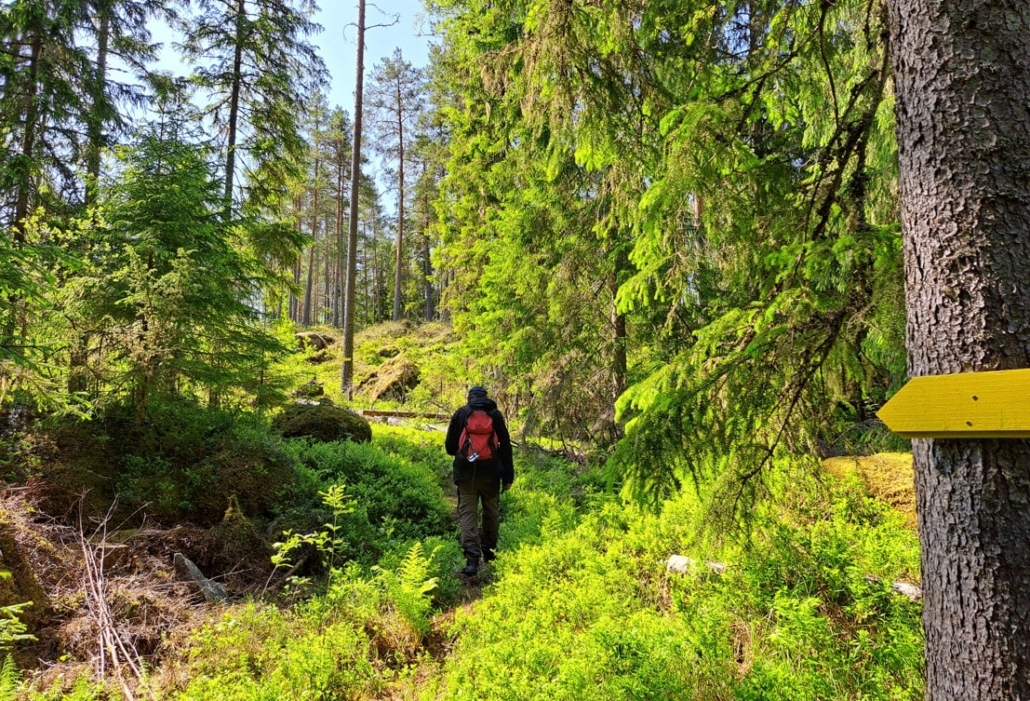 The recommended rest spot was Myrberget (near point 6), and the dance rock there made a perfect place to sit for a while. Lighting fires is prohibited on the trail, and hiking is rubbish-free.