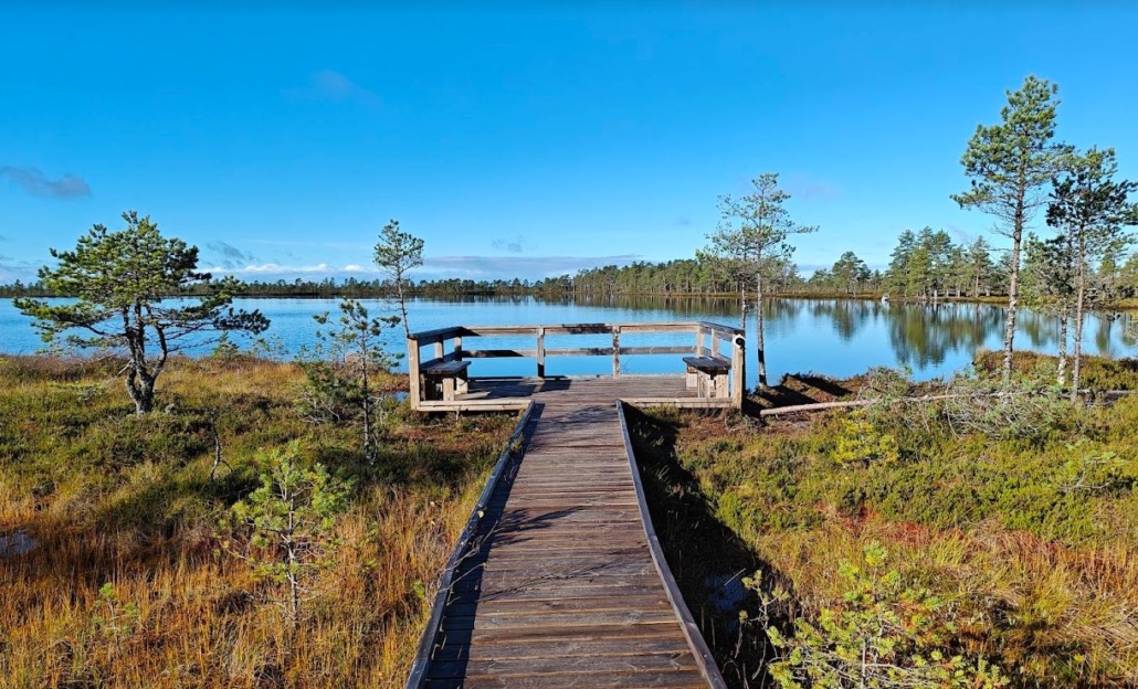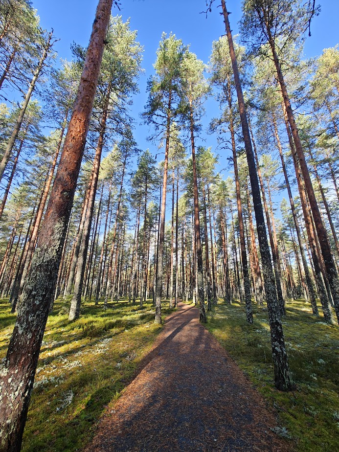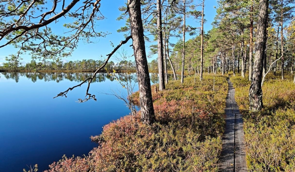 A Saturday morning in late September dawned sunny and chilly, just a few degrees above freezing. We were driving south from the city of Seinäjoki in South Ostrobothnia and decided to make a small detour to Kauhaneva-Pohjankangas National Park, which could be included on our route with a little maneuvering. A narrow, pothole-ridden dirt road led us to the Salomaa parking area, where we saw a few campers (caravanners were allowed to stay one night according to a sign) and a few cars.