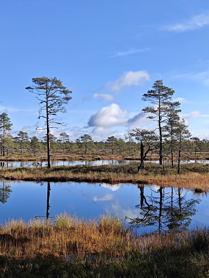 On the boggy part of the trail, which constitutes almost the entire loop, there was no shortage of water views. Besides the large Kauhalampi pond, there were small ponds here and there, sometimes quite close on both sides of the boardwalk. So unbelievably beautiful!