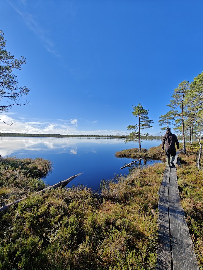 Torronsuo is a famous, ruggedly beautiful bog in southern Finland, where many go to seek the atmosphere of the northern wilderness bogs. Whenever I visit Torro, I always miss one thing: bodies of water. I want to see a landscape where lakes and ponds glimmer in blue, swirl mysteriously in the dark embrace of the bog, and make the air easy to breathe. As I stepped onto the boardwalks of Kauhaneva-Pohjankangas National Park, I realized that there would be no turning back – from now on, I’d always, always want to come here.