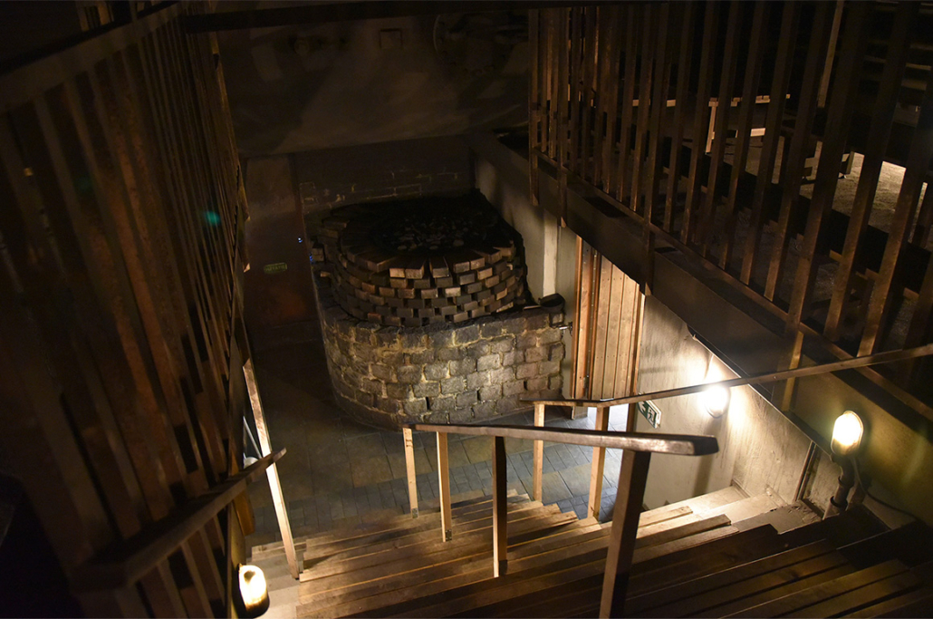 Ich begann mit einer Dusche und ging dann für ein leichtes Aufwärmen in die Sauna. Auf beiden Seiten der Sauna befinden sich Waschräume, von denen jeweils eine Tür in den unteren Bereich der Sauna führt. Von dort gelangt man über breite Stufen hinauf in die schummrige, aber stimmungsvolle Sauna. An beiden Seiten der Treppen gibt es Plätze – auf der einen Seite zum Sitzen, auf der anderen zum Gehen.