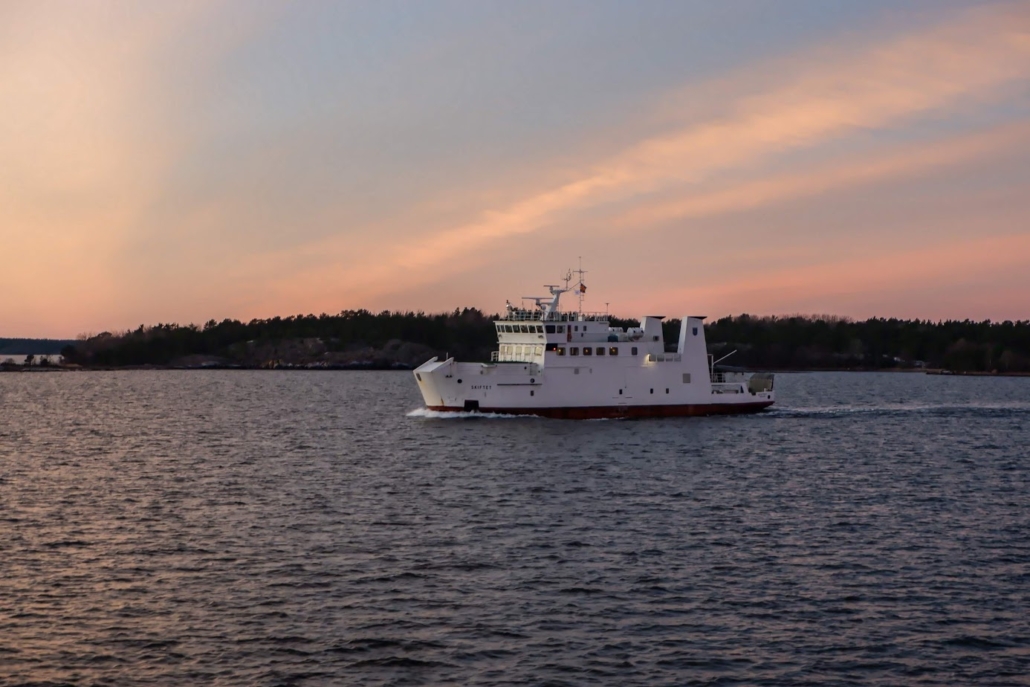Various car ferries operate along the coast of Finland, transporting locals and tourists to the archipelago. This vessel called “Skiftet” operates in Ă…land.