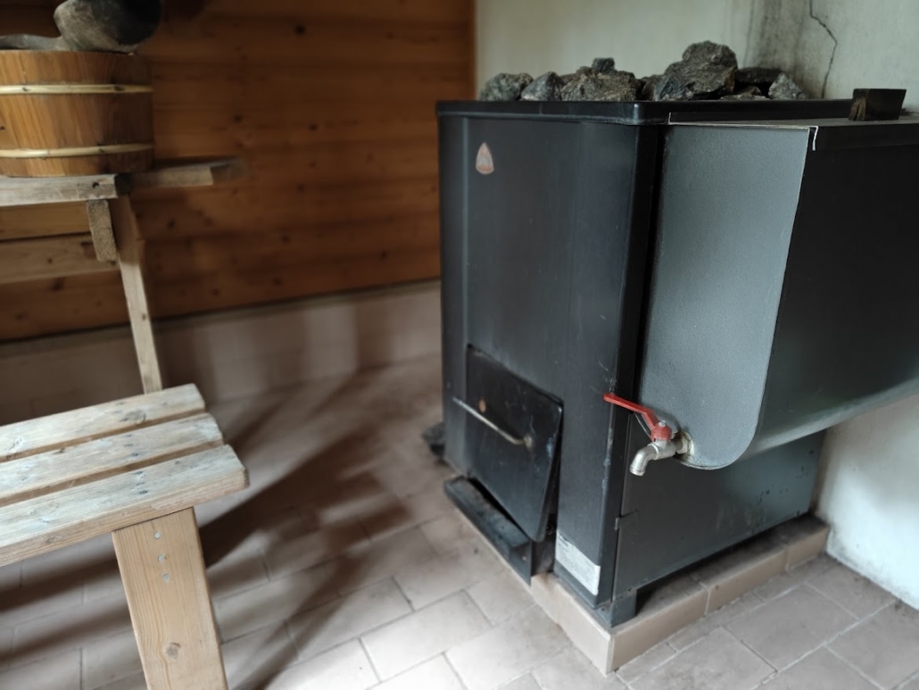In many traditional saunas, especially at cottages, there’s also a large metal tank next to the stove for heating water. This water is boiled by the heat of the stove and then mixed with cold water to make the perfect temperature for washing.
