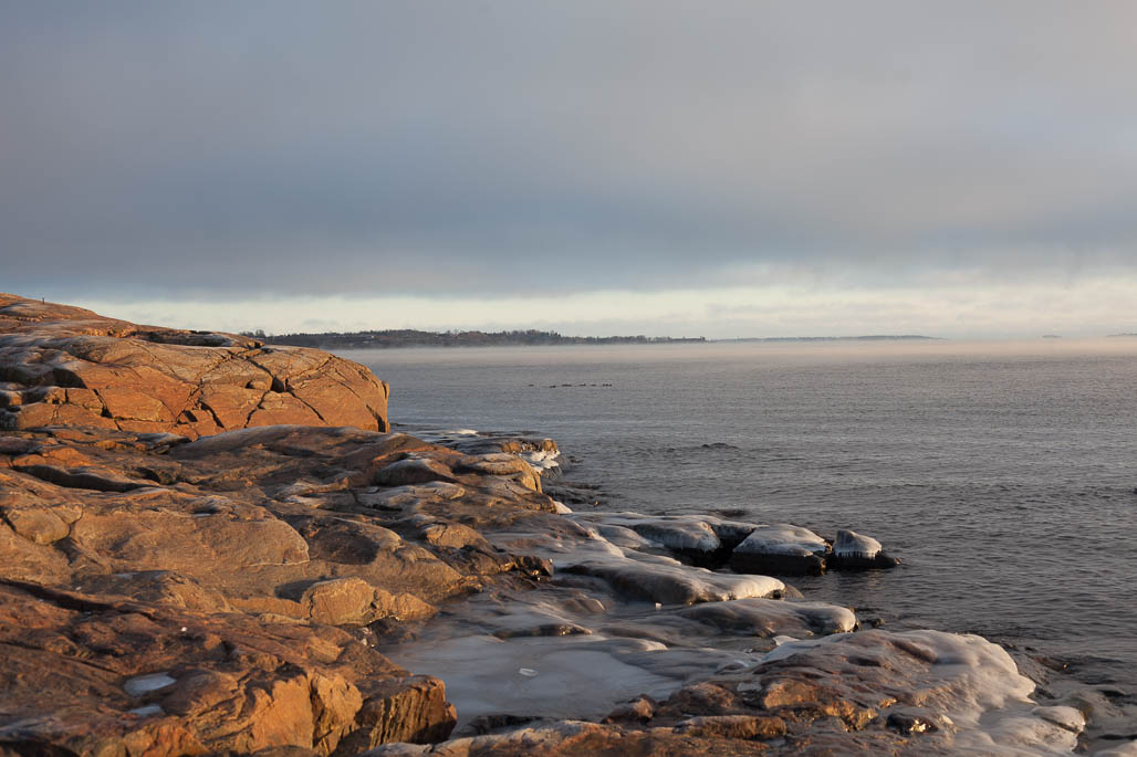 In winter time, icy seaside cliffs and cold air make a strong contrast to the open sea. When the water has higher temperature than the air, steam begins to rise above the sea. That makes the scenery even more dramatic. Rocks and cliffs are beautiful when covered with ice. Be careful, they are slippery, too.