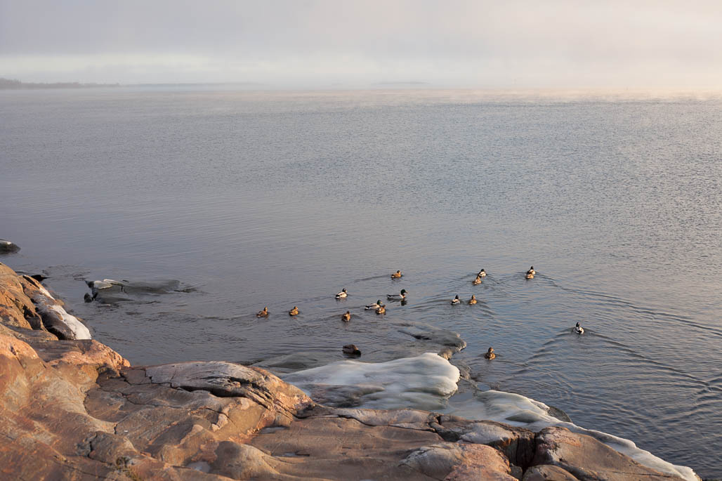 Kaivopuisto in southern Helsinki offers beautiful view to the archipelago and nice walk by the waterfront. In November when weather gets cold, sea begins to freeze and boats are lifted to the dock yard for the winter.